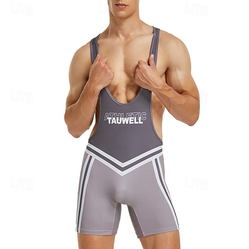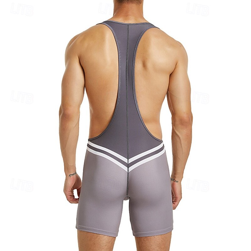 More information about Men's Wrestling Suit Body Shaping Jumpsuit Shapewear Breathable Quick Dry High Stretch Summer Spring Polyester Outdoor Walking Jogging Blue Grey