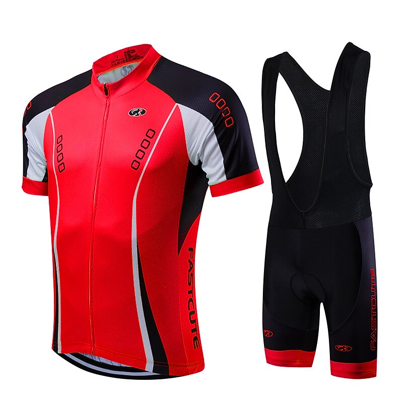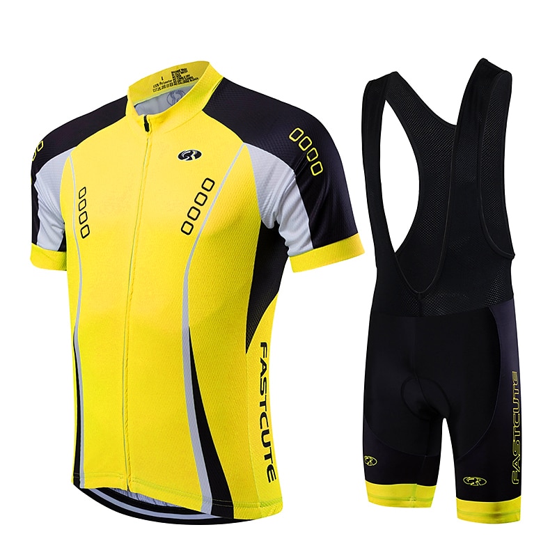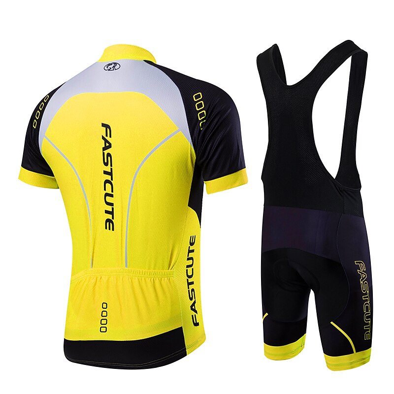 HOT ! Fastcute Men's Unisex Cycling Jersey with Bib Shorts Short Sleeve Mountain Bike MTB Road Bike Cycling Yellow Light Green Red Fashion Bike Jersey Bib Tights Clothing Suit Breathable Quick Dry Back