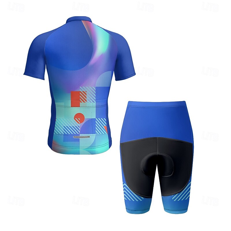 More information about Men's Cycling Jersey with Shorts Geometric Gradient Short Sleeve Bike Clothing Suit with 3 Rear Pockets Mountain Bike MTB Road Bike Cycling Front Zipper Sweat wicking Comfortable Breathable Sports