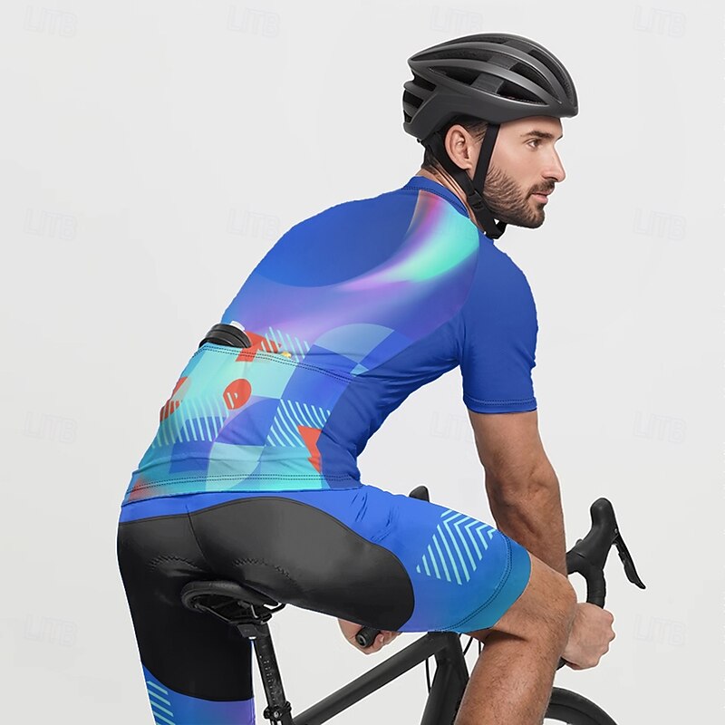 Men's Cycling Jersey with Shorts Geometric Gradient Short Sleeve Bike Clothing Suit with 3 Rear Pockets Mountain Bike MTB Road Bike Cycling Front Zipper Sweat wicking Comfortable Breathable Sports 4