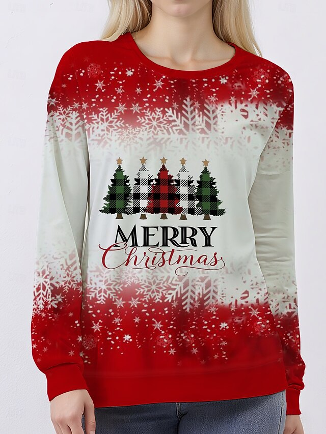 More information about Women's Pullover Sweatshirt Hoodies Graphic Christmas Tree Christmas Classic Casual Festival Long Sleeve Crew Neck Round Neck Regular Tops Casual Holiday Print Red Fall Winter