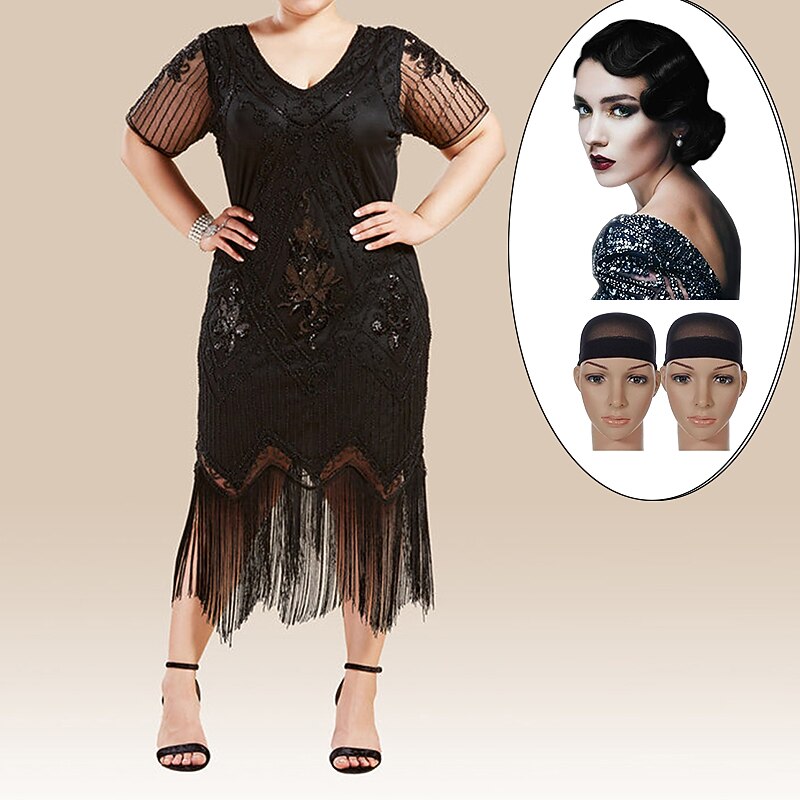 $55.99 - Set with Flapper Dress Finger Wave Wig 2 Wig Caps 3 PCS Outfits Roaring 20s 1920s Cocktail Dress Vintage Dress Plus Size Great Gatsby Women's Cosplay Costume Prom Masquerade Attire Christmas Party 2025. Shop for cheap Outfits online? Buy at lightinthebox.com on sale today!