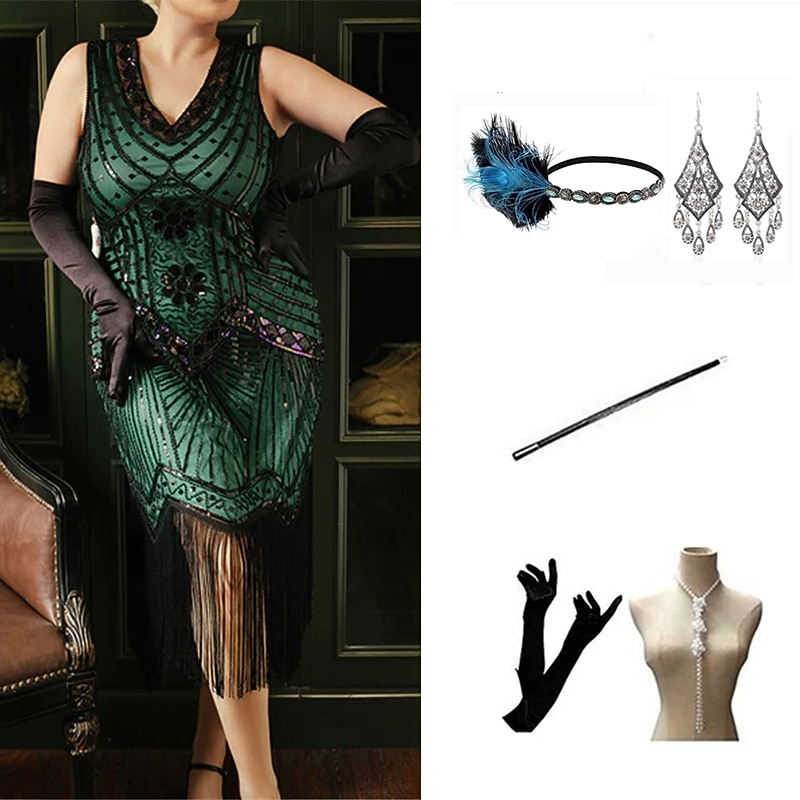 Why Choose The Great Gatsby Midi Flapper Dress Dress Outfits The Great Gatsby Wedding Guest Sequins Tassel Fringe Sequin Tassel V Neck Fancy Dress Women's Masquerade Prom Party & Evening Wedding Reception?
