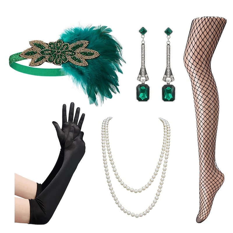 $29.99 - Set with Feather Flapper Headband Long Gloves Fishnet Stocking Earings Pearl Necklace Retro Vintage Roaring 20s 1920s Accesories Set The Great Gatsby Women's Cosplay Costume Carnival Party Evening 2025. Shop for cheap Accessories and More online? Buy at lightinthebox.com on sale today!