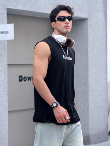 OYOANGLE Men's Sleeveless Shirts Tank Top Summer Casual Graphic Tee Letter Print Crew Neck T-Shirt 6