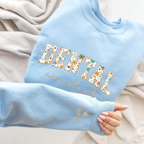 UrbanNEST Custom Dental Assistant Embroidered Sweatshirt, Personalized Dental Assistant Floral Applique Shirt, Custom Name on Sleeve with Heart, Gifts for RDA, RDA Sweater
