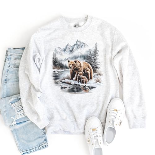 Why Choose Vintage Mama Grizzly Bear & Cubs Wilderness Scene Sweatshirt - 90s Retro Brown Bear Wildlife Sweatshirt - Scenic Winter Mountain Nature Sweater - Unisex Graphic Crewneck Sweatshirt?