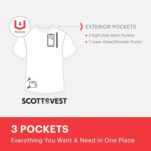 HOT ! SCOTTeVEST T-Shirt for Men - 3 Hidden Pockets - Breathable Moisture Wicking Crew Neck Shirt for Travel & More
