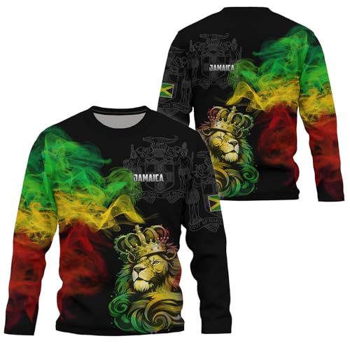 Men's Jamaica Flag Long Sleeve T-Shirt Jamaican Lion Print Tee Jersey Casual Round Neck Long Sleeve Top Unisex