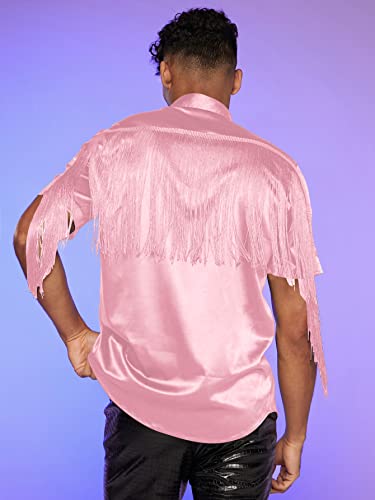 WDIRARA Men's Button Front Short Sleeve Fringe Trim Party Shirt Collar Club Tops 4
