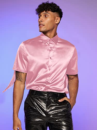 WDIRARA Men's Button Front Short Sleeve Fringe Trim Party Shirt Collar Club Tops 5
