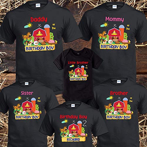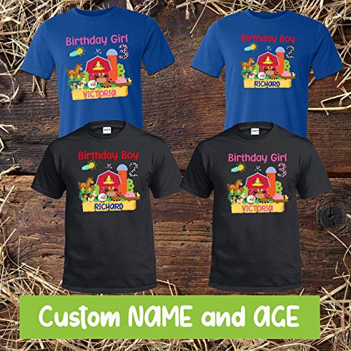 Farm Birthday T-Shirts Farm Family Shirts Animals Birthday party Matching Family Cow Tractor Chicken Pig Dog Farm Birthday Shirts Custom Personalized 2