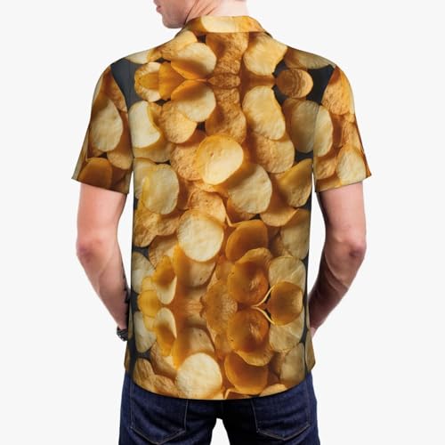 Fabric type: 100% PolyesterNeck style: High NeckSleeve type: Short SleeveFit type: Classic FitSize Shoulder Width 1/2 Bust Length 1/2 Sleave Length (cm) S Size 44.5cm/17.5in 49cm/19.3in 71cm/27.9in 21cm/8.3in M Size 46.5cm/18.3in 53cm/20.8in 73cm/28.7in 22cm/8.7in L Size 48.5cm/19in 57cm/24.4in 75cm/29.5in 23cm/9in XL Size 50.5cm/19.9in 61cm/24in 77cm/30.3in 9.4cm/9.4in XXL Size 53cm/20.8in 71cm/26in 80cm/31.5in 25cm/9.8in 3XL Size 55.5cm/21.8in 74cm/27.9in 83cm/32.7in 26cm/10.2in 4XL Size 58cm/22.8in 76cm/29.9in 86cm/33.8 27cm/10.6inMaterial: Crafted from polyester, ensuring a soft, comfortable, and breathable fit for warm weather. Stay cool and fresh during summer adventures or outdoor activities like golf, hiking, or camping.Versatile Fit: Designed with a regular fit that is both classic and modern, suitable for casual outings, weddings, celebrations, vacations, or even business settings. These Potato Chips Print polos adapt effortlessly to various occasions.Functional Details: Equipped with a POLO collar, short sleeves, and a 3-button placket for convenience and style. The Potato Chips Print moisture-wicking properties keep you dry and comfortable throughout the day.All-Day Comfort: Soft and lightweight fabric ensures maximum comfort while maintaining a polished look, whether you are traveling, working, or enjoying sports. Perfect for everyday use. High quality materials and excellent craftsmanship ensure long-lasting durability.