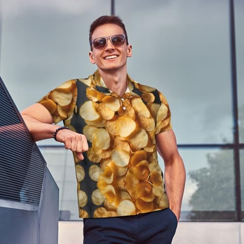 Potato Chips Print Polo Shirts Short Sleeve Tees Breathable Golf Work Outdoor Activities Casual Wear