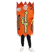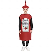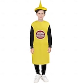 Highlights Product Title: Food Carnival Costume Halloween Group Family Costumes for Kids Product Description: [Fabric] : Each costume is crafted from lightweight, breathable polyester, ensuring comfort and flexibility for active play. The soft, durable material is perfect for children, allowing them to move freely while wearing these fun costumes. [Fit] : These costumes are designed in a spacious tunic style, making them easy to slip over regular clothing. The tunics provide a comfortable fit, accommodating a variety of body types. [Design Highlights] : Each costume features unique, playful designs that transform children into their favorite foods. The Mustard Costume boasts a bright yellow design reminiscent of a mustard bottle, while the Ketchup Costume features a vibrant red hue with playful print details. The French Fries Costume is characterized by a striking red and white striped pattern. The Chocolate Bar Costume captures attention with its rich brown color and whimsical wrapper details, and the Peanut Butter Cups Costume stands out with its eye-catching orange hue and realistic print. [Occasions] : Ideal for Halloween parties, themed events, or dress-up play, these costumes offer a delightful combination of creativity and playfulness. They are perfect for added fun at any carnival or festive gathering. [Size] : These costumes are available in one size, designed to fit a range of children's body types comfortably. These food-themed costumes are sure to delight and entertain, adding a splash of humor to any celebration or playtime activity. Perfect for everyday use. High quality materials and excellent craftsmanship ensure long-lasting durability.
