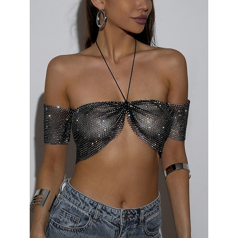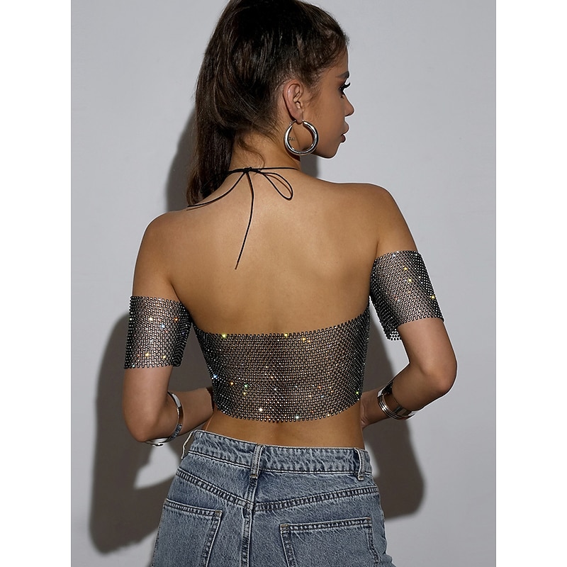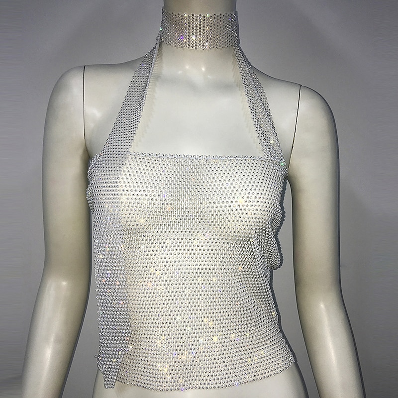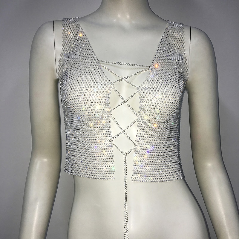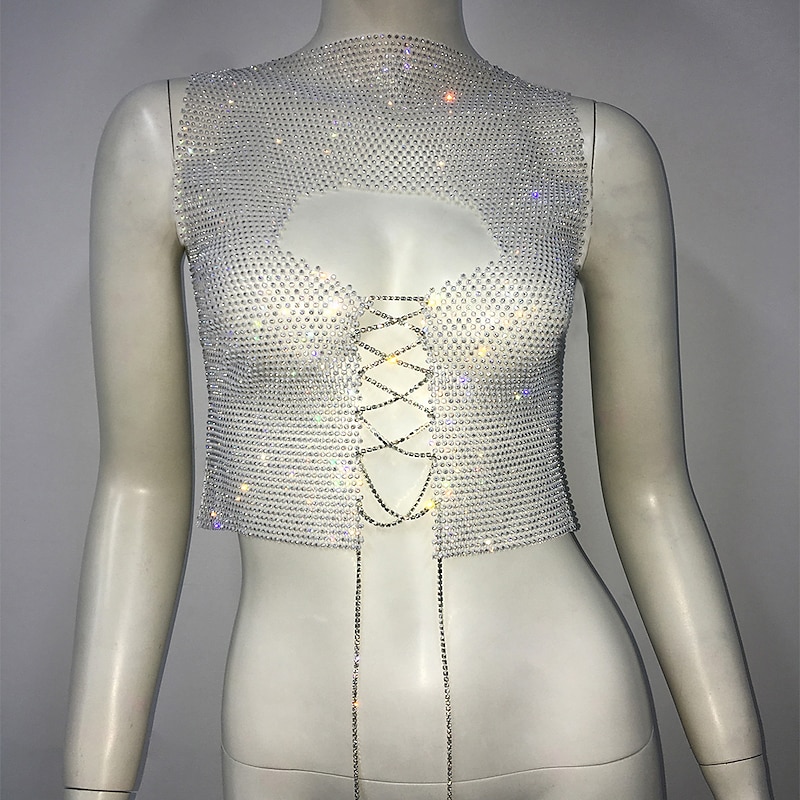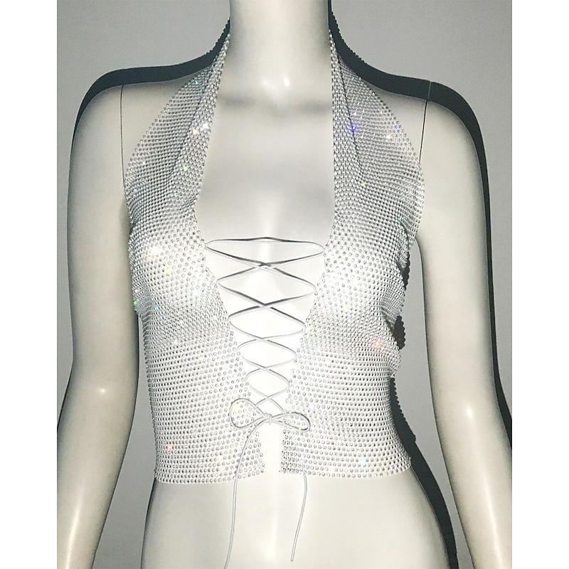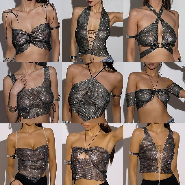 $23.99 - Metallic Sparkle Sexy Crop Tank Top Sheer Mesh Rhinestone Cover Up Disco Solid Color Deep V Fancy Dress Women's Carnival Party Club Adults' Tank Top 2025. Shop for cheap Sexy Costumes online? Buy at lightinthebox.com on sale today!