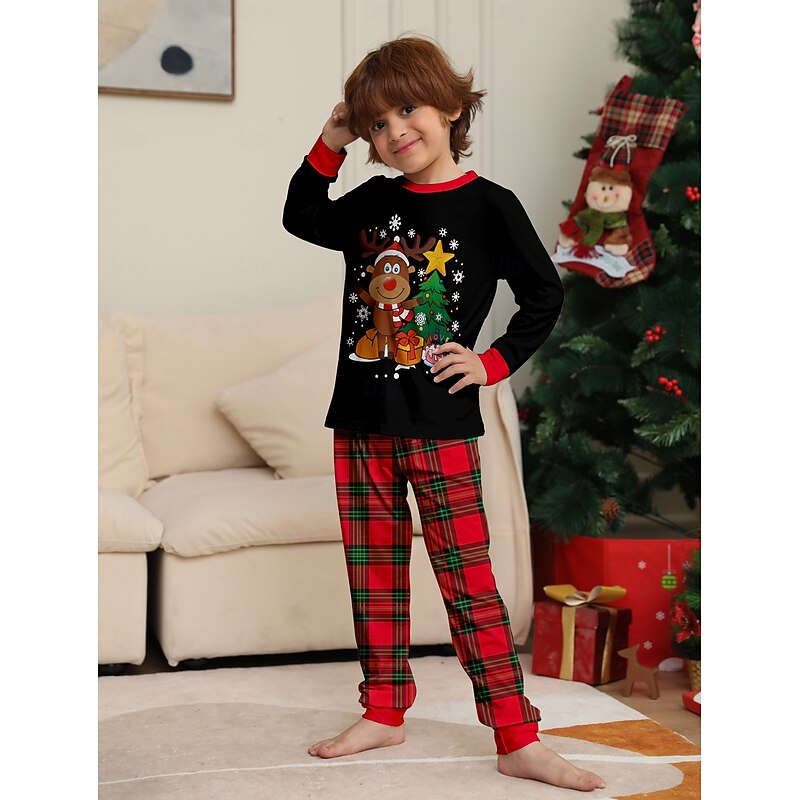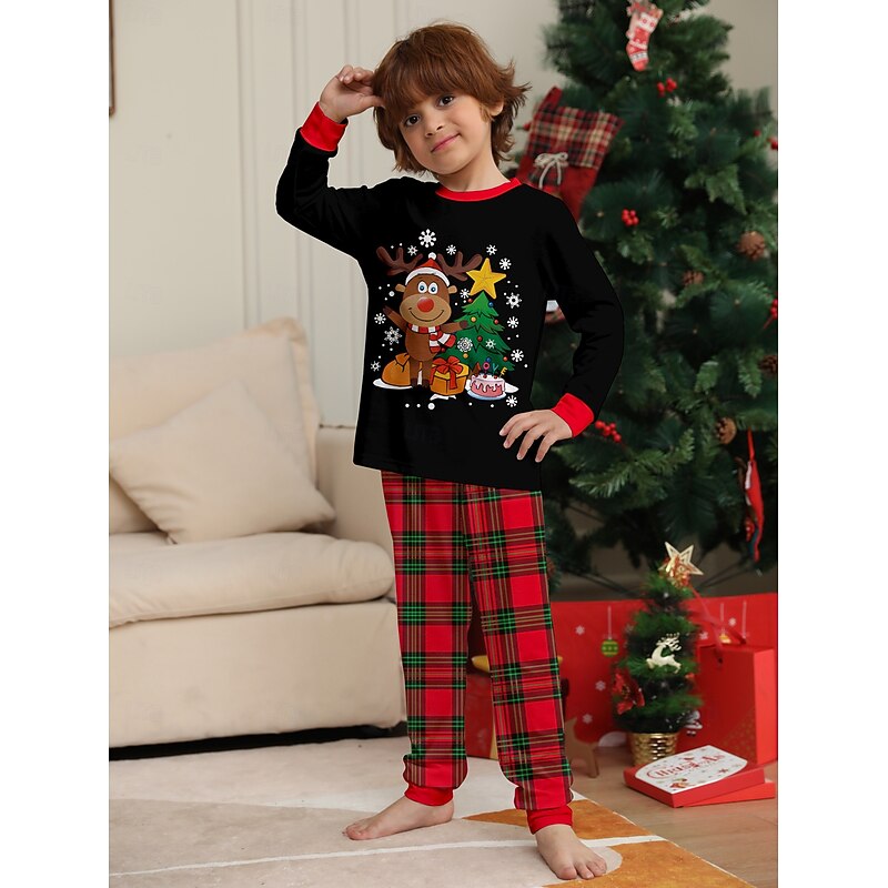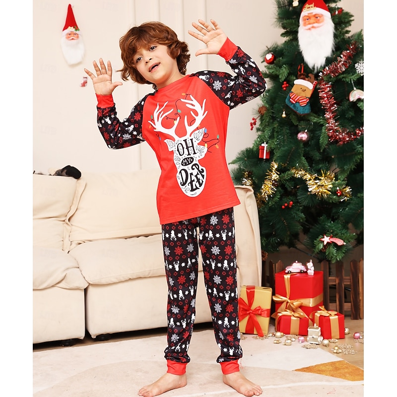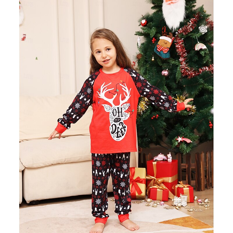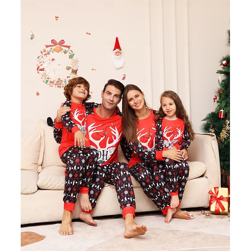 Reindeer Family Christmas Pajamas Nightwear Men's Women's Boys' Girls' Family Matching Outfits Sweet Graphic Pattern Adults Kid's Christmas New Year Christmas Eve Christmas Vacation Home Wear Top 17