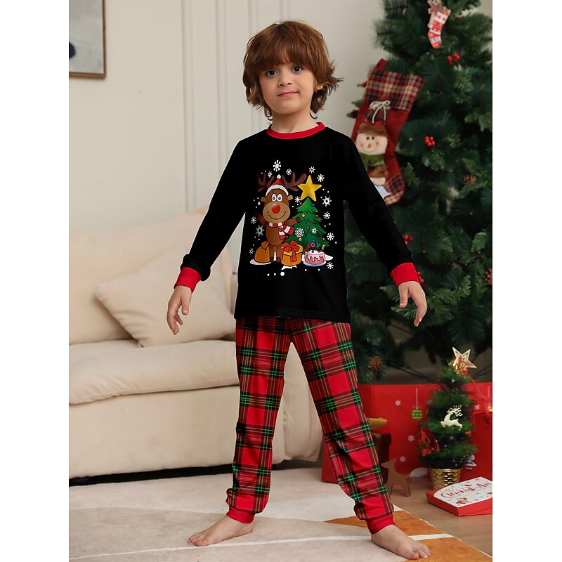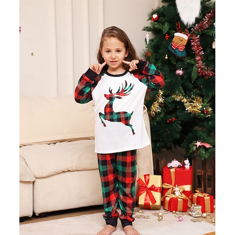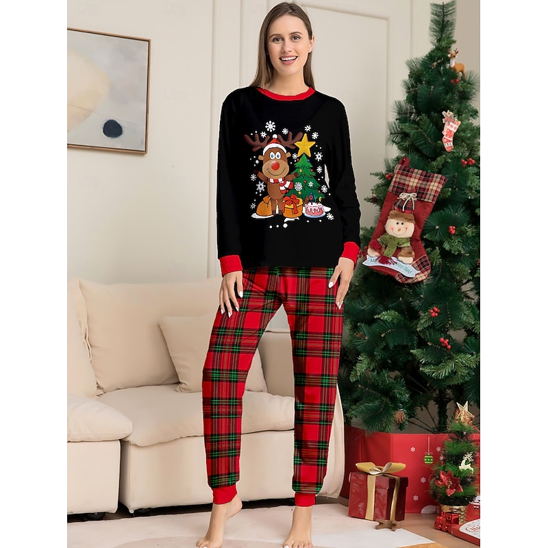 Reindeer Family Christmas Pajamas Nightwear Men's Women's Boys' Girls' Family Matching Outfits Sweet Graphic Pattern Adults Kid's Christmas New Year Christmas Eve Christmas Vacation Home Wear Top 9