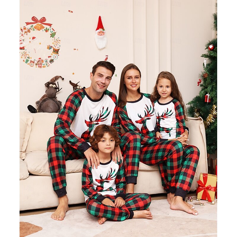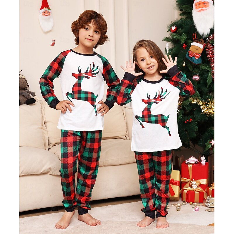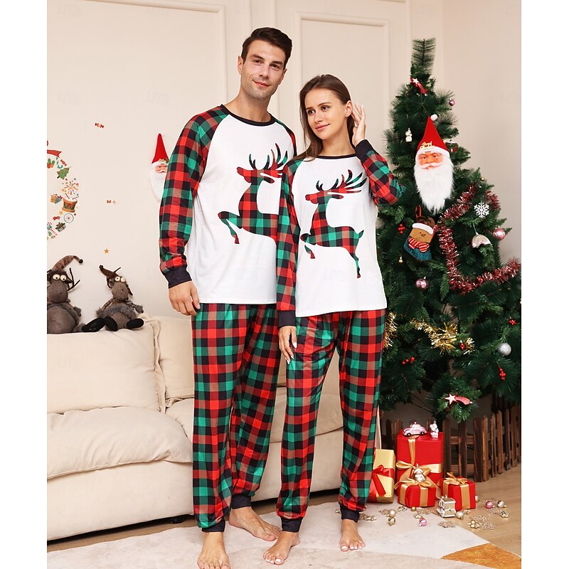 Reindeer Family Christmas Pajamas Nightwear Men's Women's Boys' Girls' Family Matching Outfits Sweet Graphic Pattern Adults Kid's Christmas New Year Christmas Eve Christmas Vacation Home Wear Top 10