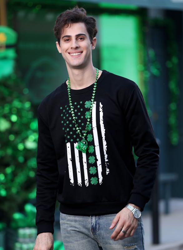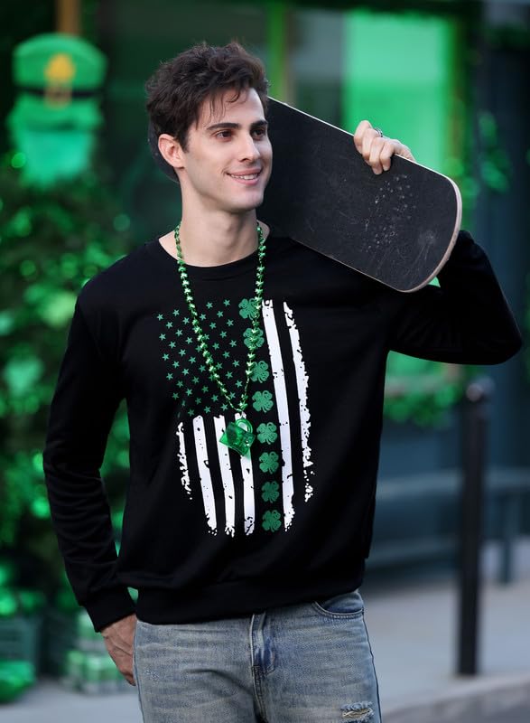 HOT ! Arvilhill Men's St Patricks Long Sleeve Sweatshirt Green Black Shamrock Shirt Clover L