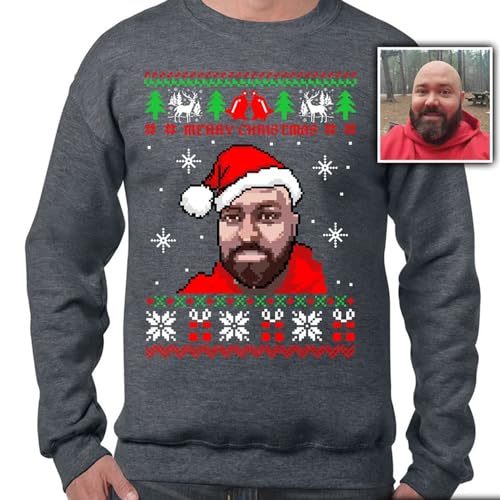 Pixel Ugly Christmas Sweaters, Many Sizes Multicolored With Customizable Face & Santa Hat 5