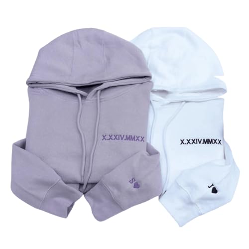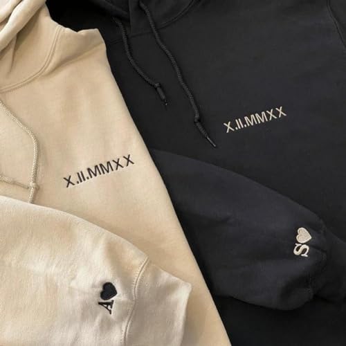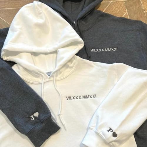 Personalized Embroidered Roman Numeral Hoodie With Date And Initial,Custom Couple Sweatshirt, Unisex White