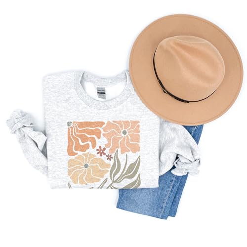 More information about Aurlex Tees Boho Flower Sweatshirt, Wavy Wildflower Sweatshirt, Cute Floral Botanical Sweater, Unisex Graphic Crewneck Sweatshirt Sand