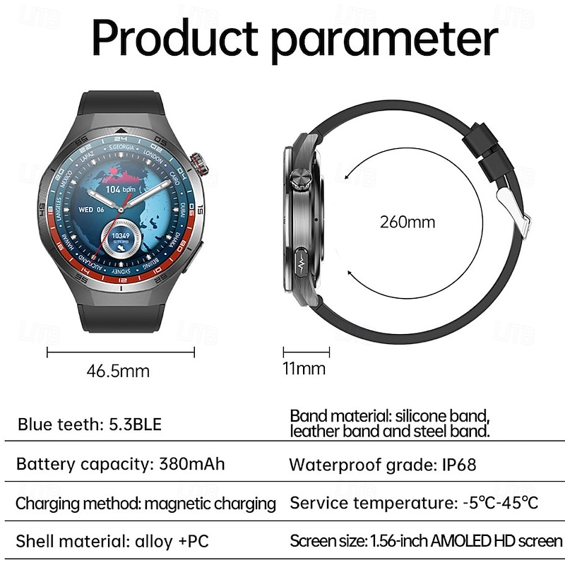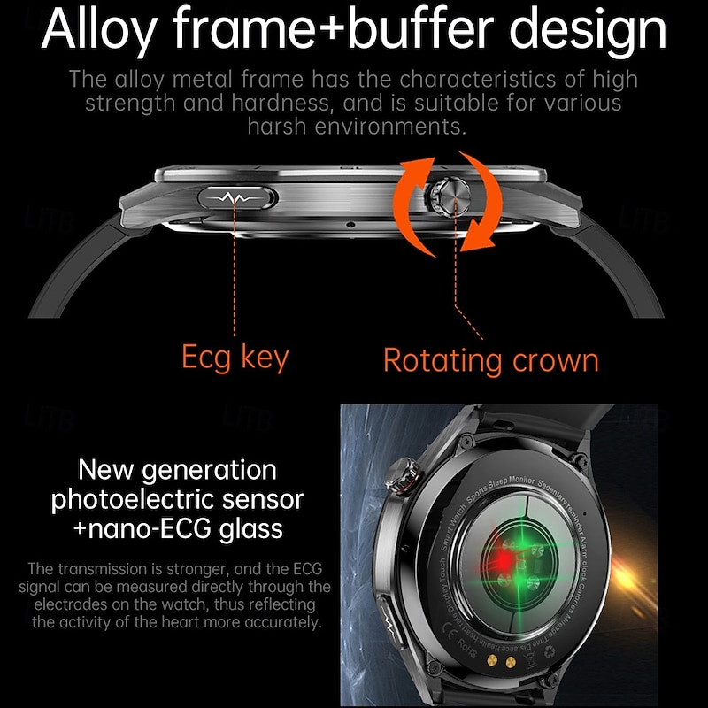 More information about 696 ET456 Smart Watch 1.56 inch Smartwatch Fitness Running Watch Bluetooth ECG+PPG Pedometer Call Reminder Compatible with Android iOS Men Hands-Free Calls Message Reminder IPX-0 47mm Watch Case