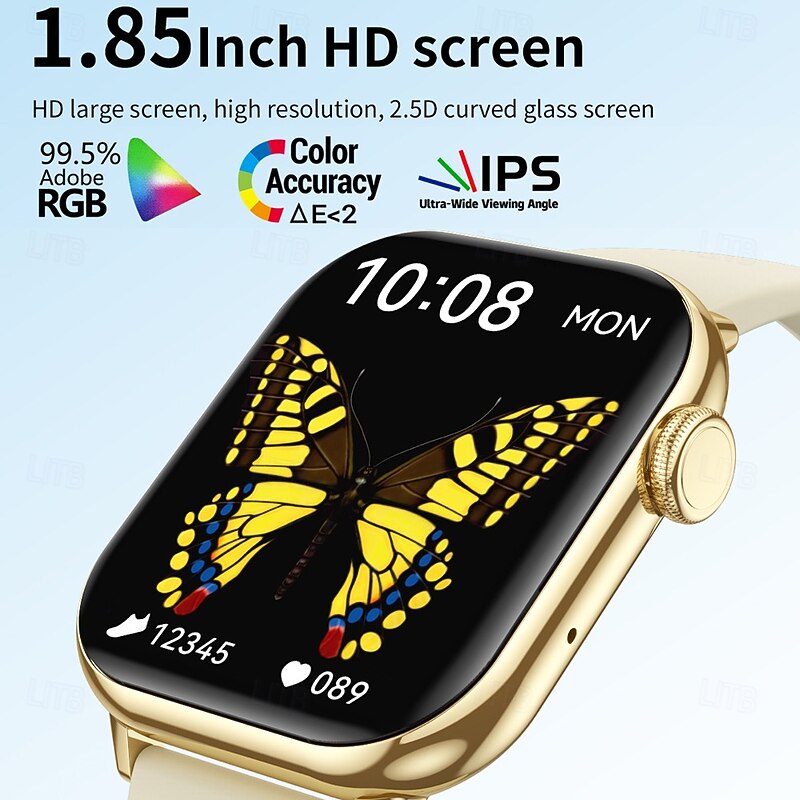 1.85 Large Screen Men Women BT Call Smart Watch 100 Sport Modes Heart Rate Sleep Health Watches Local Music Weather Smartwatch 12