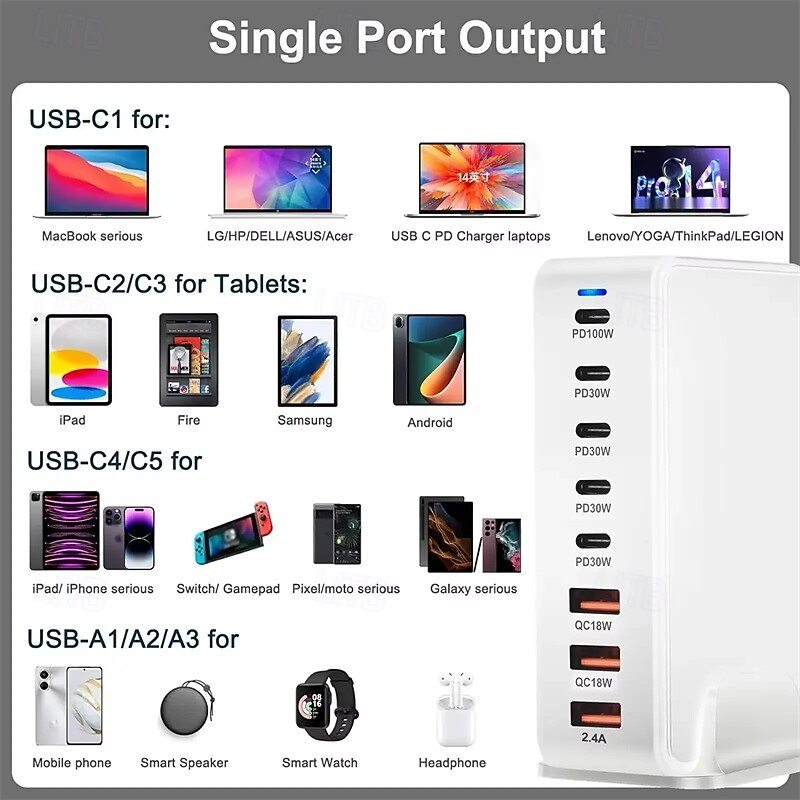 $54.99 - 268W Desktop GaN Charger 8-port USB Type C PD Charger Fast Charge 3.0 USB Type C Fast Charger Mobile USB Charger 2025. Shop for cheap Computer Peripherals online? Buy at lightinthebox.com on sale today!