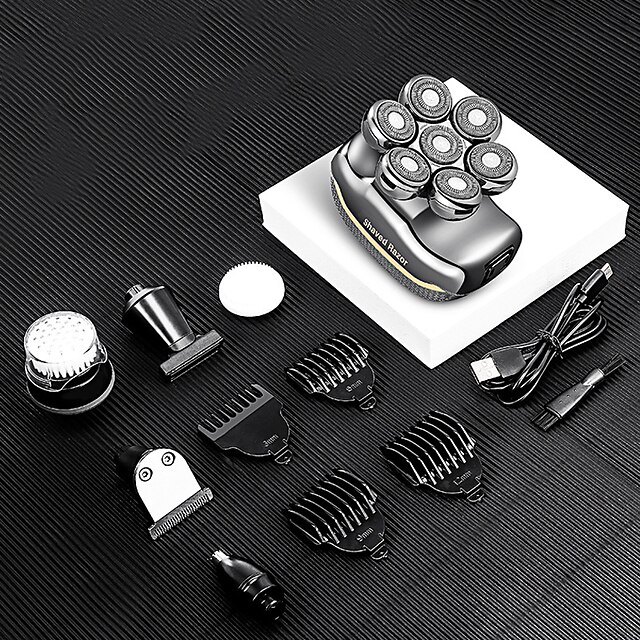 Men's Electric Head Shaver Razor - Rechargeable Cordless Hair Shaving Razors For Bald Man 6 In 1 Waterproof Wet Dry Beard Trimmer Body Hair Cutting Clipper Grooming Kit 7 Rotary Heads 8