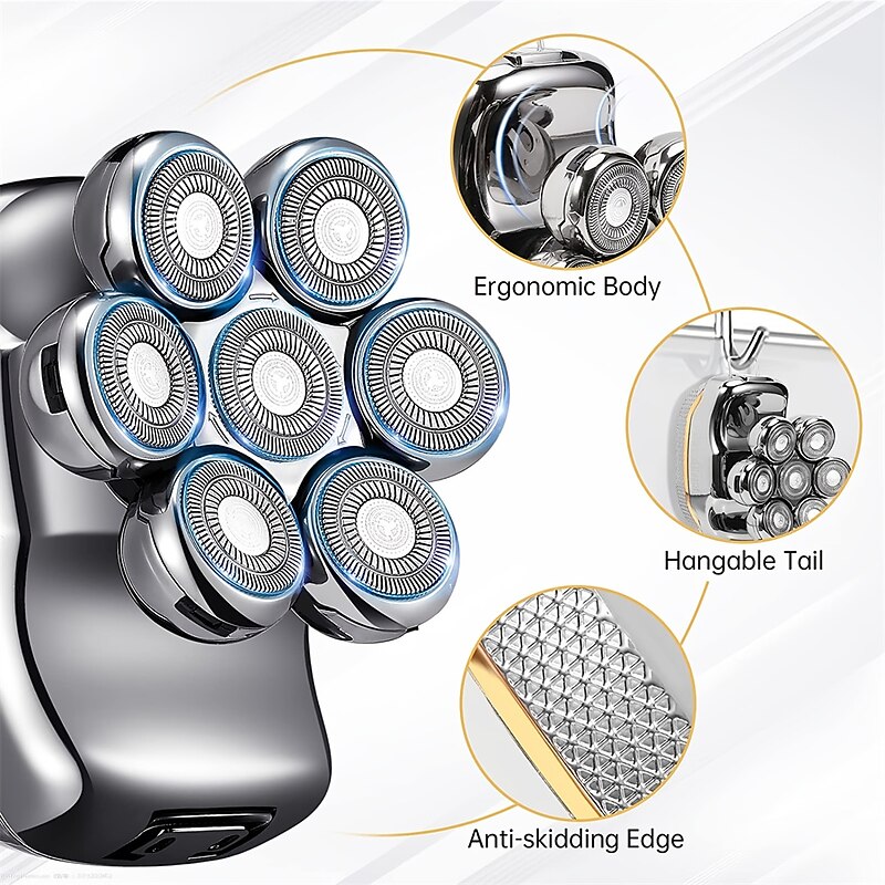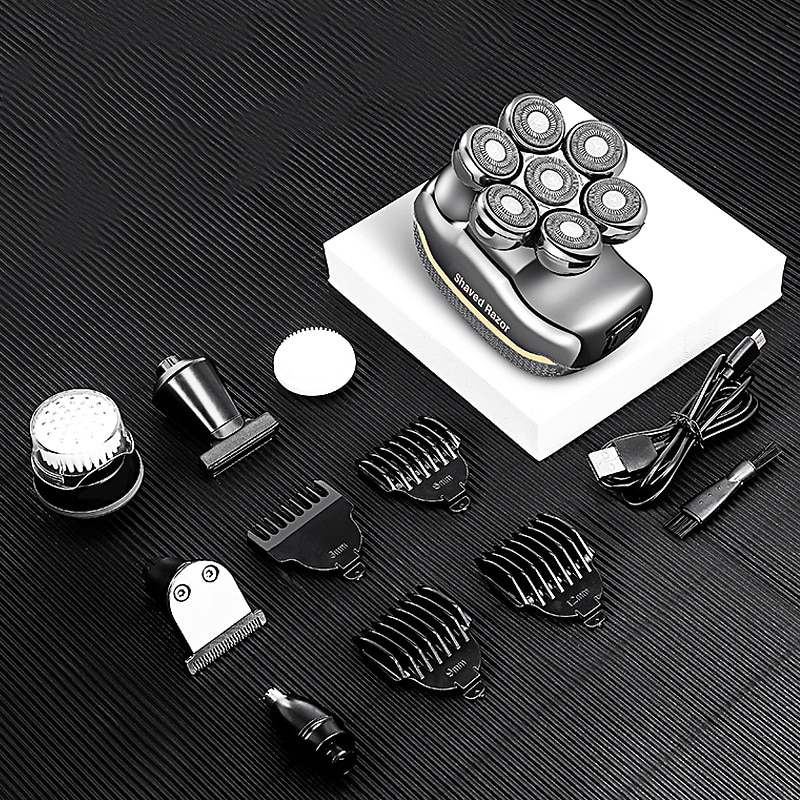 Men's Electric Head Shaver Razor - Rechargeable Cordless Hair Shaving Razors For Bald Man 6 In 1 Waterproof Wet Dry Beard Trimmer Body Hair Cutting Clipper Grooming Kit 7 Rotary Heads 7