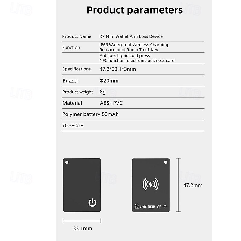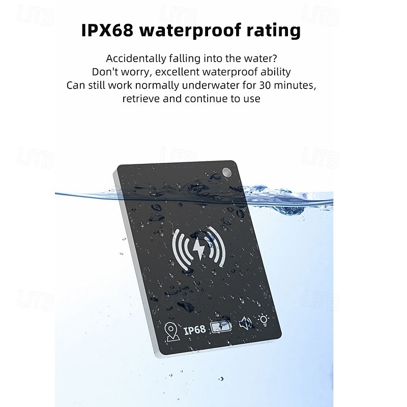 More information about Bluetooth(iOS Only) Tracke IP68 Waterproof Rechargeable Smart Tag Key Finder Locator with Sound Item Tracker Card for Key Wallet Luggage Backpack Suitcases Passport