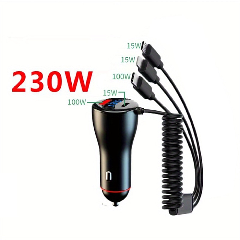 Fast Phone Car Charger Adapter USB C 5-port 230W Charging With 3 In 1 Cable For IPhone 14 Pro Max 13 12 Samsung Galaxy S23/22 Google Pixel 9