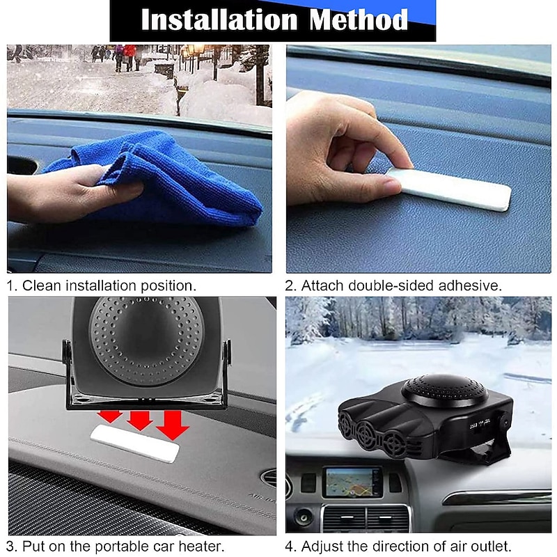 - 【Powerful Fast Heating & Energy Saving】 With three main vents and a fixed wind direction, this heater can heat directly and completely, effectively defrosting and dehumidifying windshields to ensure a safe ride.