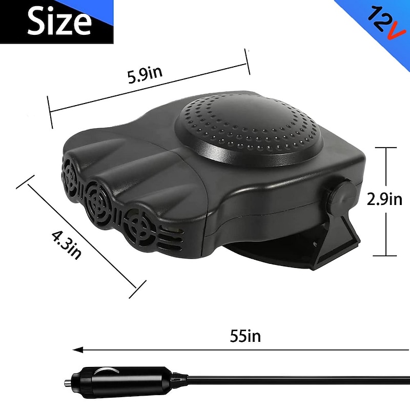- 【Wide Range Of Application】 This car heater can be plugged into the cigarette lighter socket of a wide range of vehicles, including SUVs, taxis, jeeps, trucks, and more, and is suitable for all 12V vehicles for defogging/defrosting in winter or cooling in summer.