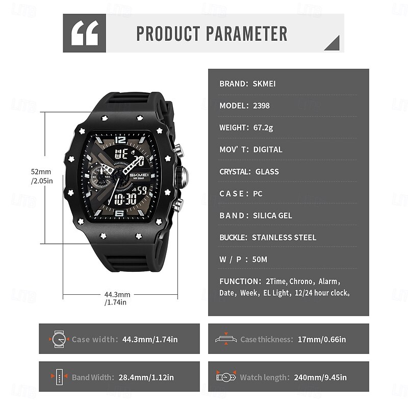 $36.99 - SKMEI Dual Display Electronic Watch Men's Wine Barrel Shaped Waterproof Luminous Multifunctional Electronic Watch 2025. Shop for cheap Quartz Watches online? Buy at lightinthebox.com on sale today!