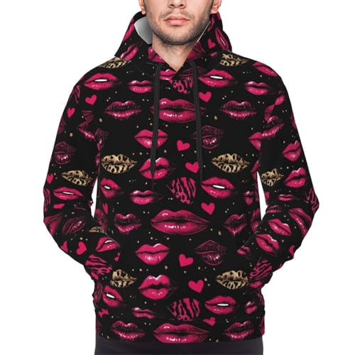 Hoodies For Men - Leopard Pink Lips Print Long Sleeve Casual Men'S Hoodies & Sweatshirts Pullover With Pocket 6