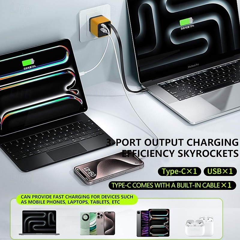$17.99 - Latest GaN Technology80W 3-Port Rapid Charger with Retractable Cable - Ultra Compact - Cold Sensitive Touch Control - Support PD/QC 3.0 Suitable for iPhone 16/15/14/13/12/11 Samsung MacBook iPad 2025. Shop for cheap Household Appliances online? Buy at lightinthebox.com on sale today!