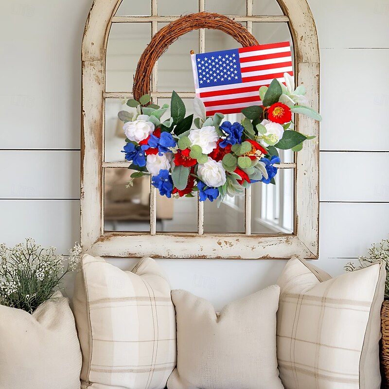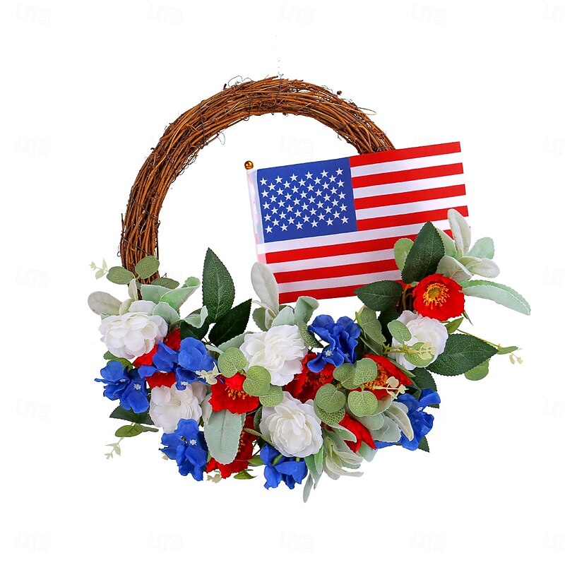 $26.99 - Patriotic Wreath for Front Door 4th of July Independence Day Red White and Blue Decoration, American Flag Star Striped Grapevine Ring, Rustic Hanging Prop for Yard Porch or Party Decor 2025. Shop for cheap Independence Day Decoration online? Buy at lightinthebox.com on sale today!