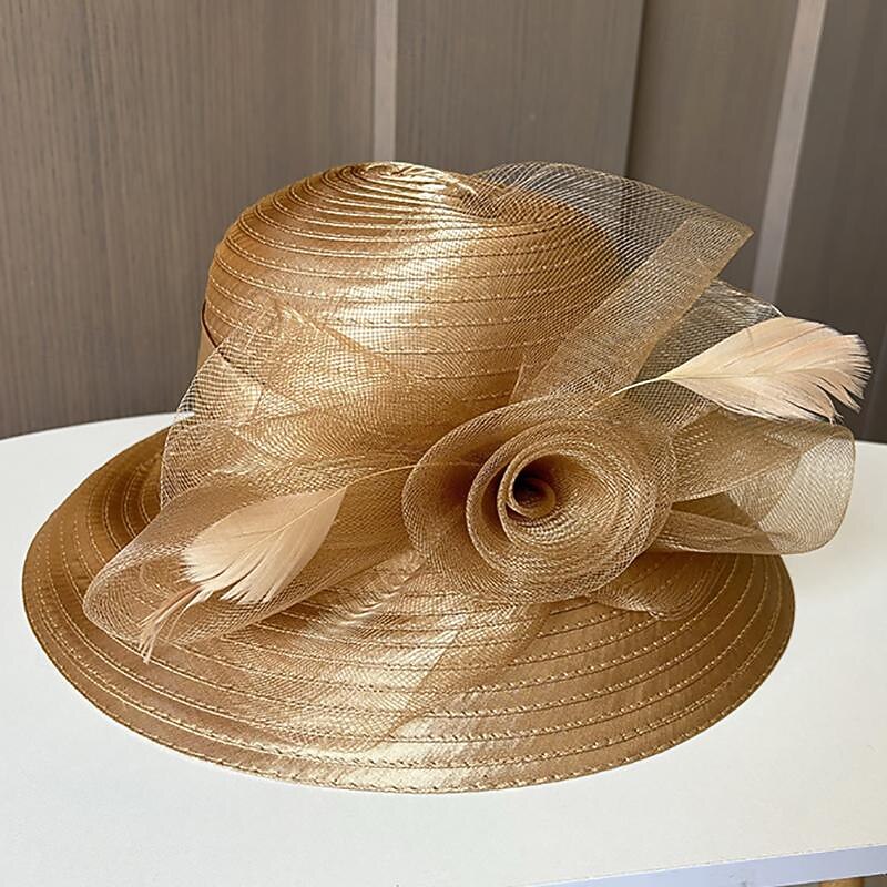 Fascinators Hats Headwear Polyester Organza Bucket Hat Floppy Hat Sun Hat Casual Holiday Elegant Vintage With Feather Flower Headpiece Headwear 11