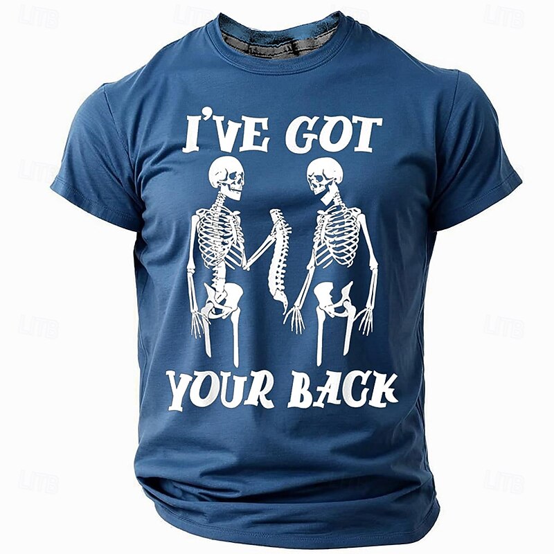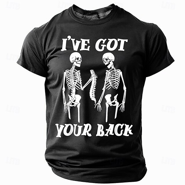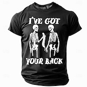 Highlights [Fabric] Crafted from high-quality polyester, this T-shirt offers a comfortable and breathable fit for spring and summer. The micro-elastic fabric ensures ease of movement while maintaining a sleek appearance. [Fit] The T-shirt showcases a tailored fit that complements a range of body types, providing a relaxed silhouette. The classic crew neck and short sleeves add to its timeless design. [Design Highlights] The standout feature of this T-shirt is the cool skulls pattern created through a high-quality 3D print. The witty "I've Got Your Back" graphic design featuring two skeletons adds a playful, humorous touch. This blend of bold imagery and modern style makes it a unique wardrobe addition. [Occasions] Ideally suited for social gatherings, outdoor sports, or casual street outings, this T-shirt is both fashionable and functional. It's sure to be a conversation starter, perfect for those who enjoy expressing their personality through their clothing. [Size Notice] Available in a broad range of sizes from S to XXXL, catering to a diverse audience seeking stylish and comfortable apparel.