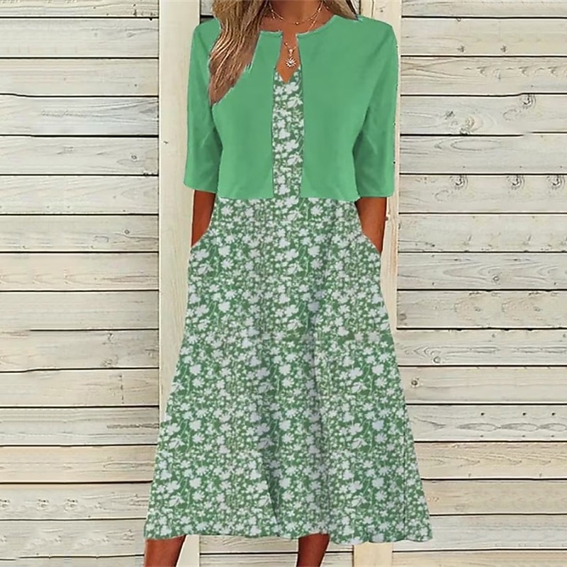 This Women's Midi Dress Casual Dress Dress Set Fashion Modern Daily Beach Weekend Regular Fit Flower Half Sleeve V Neck Light Green Pink Red Blue Spring Fall combines elegant design with practical functionality. Every detail has been carefully considered to ensure you get the best possible experience. The high quality construction means this product will serve you well for years to come.