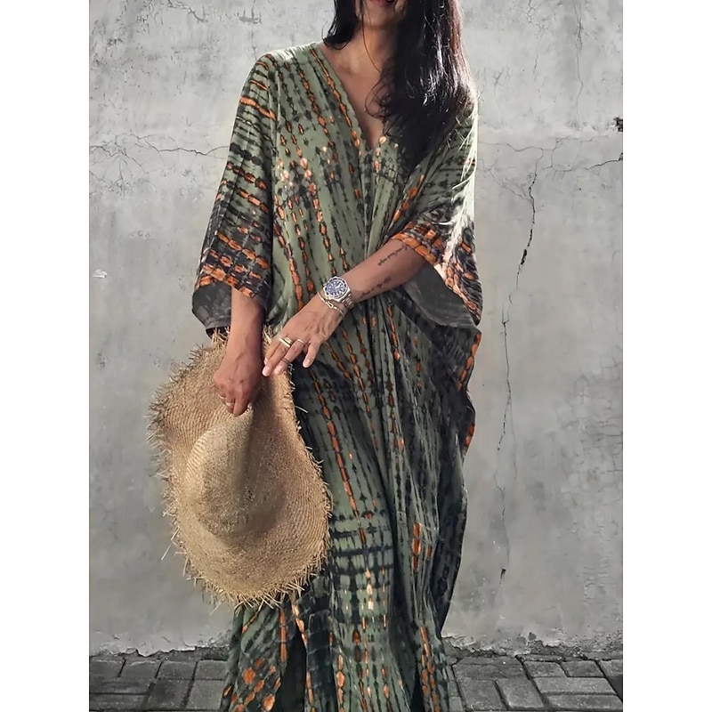 This Women's Maxi Dress Sundress Vacation Casual Boho Outdoor Party Going out Regular Fit Geometric 3/4 Length Sleeve V Neck Yellow Red Blue Green Summer combines elegant design with practical functionality. Every detail has been carefully considered to ensure you get the best possible experience. The high quality construction means this product will serve you well for years to come.