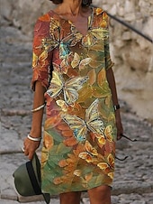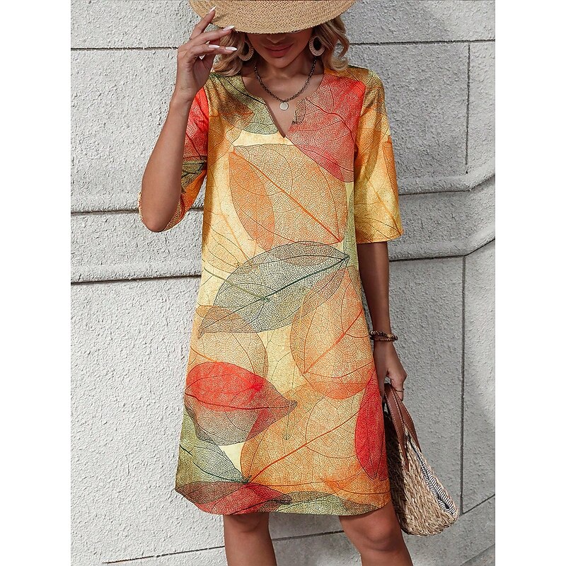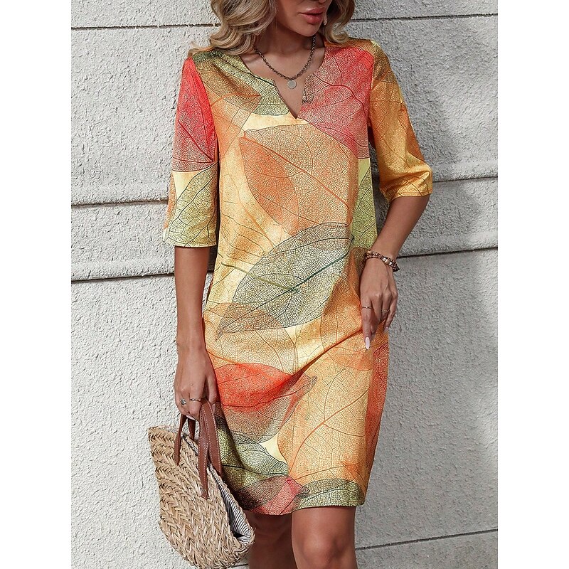 This Women's Mini Dress Shift Dress Summer Dress Formal Daily Regular Fit Graphic Leaf 3/4 Length Sleeve V Neck Yellow Brown Green Summer Spring combines elegant design with practical functionality. Every detail has been carefully considered to ensure you get the best possible experience. The high quality construction means this product will serve you well for years to come.
