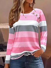 More information about Women's T Shirt Graphic Striped Vintage Stylish Classic Long Sleeve Crew Neck Regular Tops Daily Going out Weekend Buttons Print Pink Spring Fall Winter