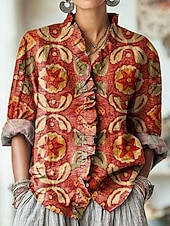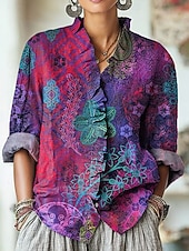 More information about Women's Boho Shirt Floral Graphic Elegant Vintage Daily Long Sleeve V Neck Regular Tops Work Daily Holiday Ruched Ruffle Blue Purple Orange Khaki Spring Fall