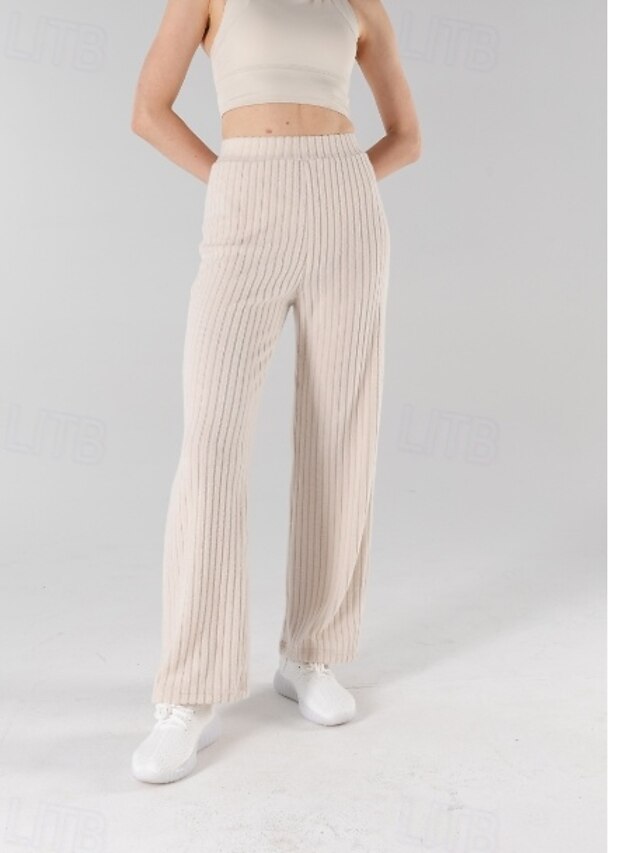 Women's EU / US Size Bell Bottom Casual Full Length High Waist Solid Colored Stripe Sports Stretchy Athleisure Daily Wear rice white Black 1# Spring, Fall, Winter, Summer Loose Fit 1