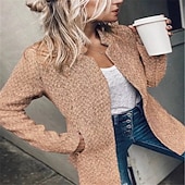 More information about Women's Winter Coat Coat Warm Comfortable Pocket Open Front Casual Plaid Vacation Going out Weekend Long Turndown Regular Fit Long Sleeve Outerwear Black Brown Khaki Fall Winter