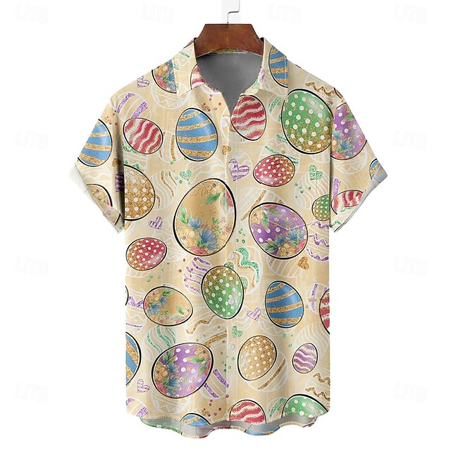 More information about Easter Men's Easter Eggs Shirt Casual Shirt Button Up Shirt Short Sleeve Vintage Retro Vacation Holiday Festival Summer Spring Turndown 3D Print Collared Shirts Front One Pocket Khaki